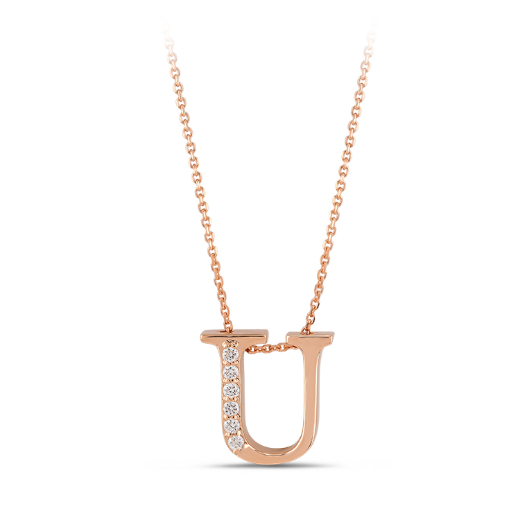 0.04 ct Letter U Diamond Necklace